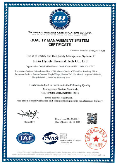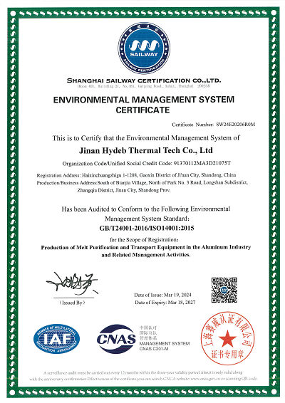 Компания Jinan Hydeb Thermal Tech Co., Ltd. расположена в городе Цзинань, Китай, и была основана в январе 2003 года. Компания специализируется на плавке и литье алюминия и предлагает профессиональные решения по очистке алюминиевого расплава для алюминиевой промышленности.